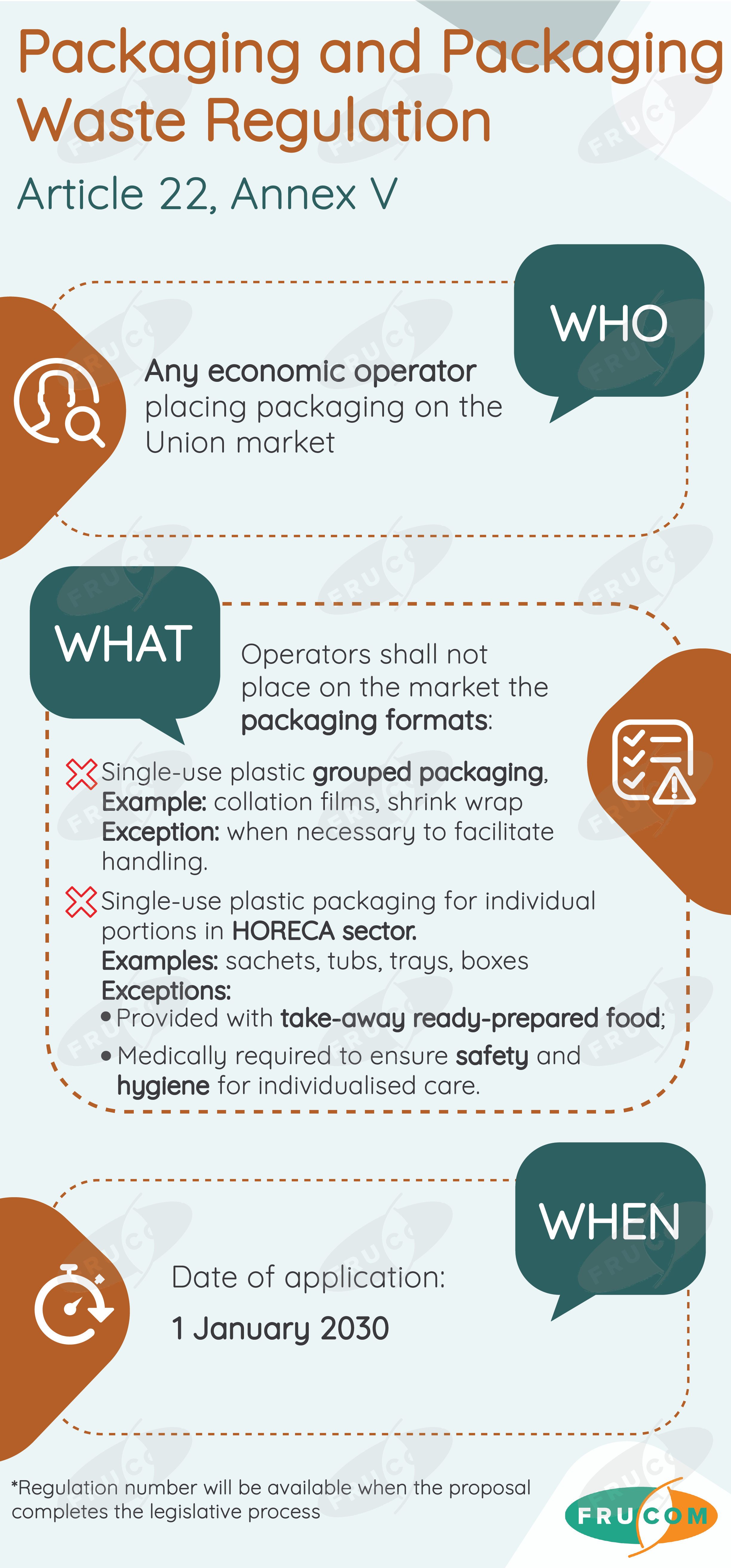 FRUCOM has developed simple visuals on EU sustainability legislation which focuses on who has to comply, what this compliance involves, and by when they will have to do so. The FRUCOM “At a Glance” visuals on EU sustainability legislation compliance can be downloaded below:
